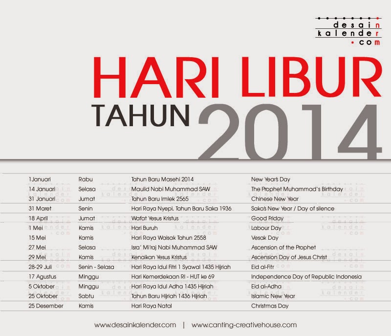 Daftar Hari Libur Nasional dan Cuti Bersama Tahun 2014