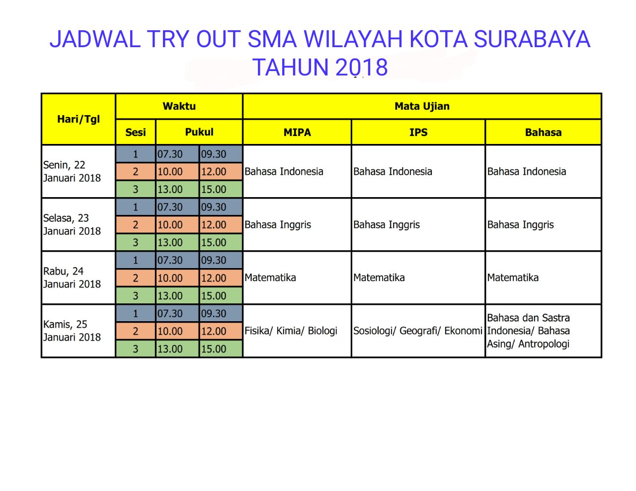 MGMP KIMIA SURABAYA: JADWAL TRY OUT SMA WILAYAH KOTA SURABAYA TAHUN 2018