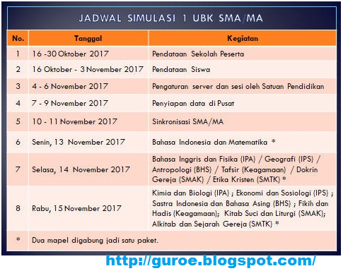 Jadwal Resmi UNBK SMP/MTs SMA/MA SMK Tahun 2017/2018 - Guru Madrasah