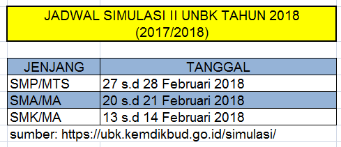Jadwal Resmi Simulasi 2 UNBK SMA/MA 2017-2018