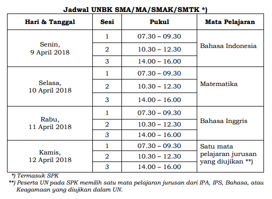 Jadwal USBN, UNBK dan UNKP 2018 SMP, SMA dan SMK | Informasi Pendidikan dan Dunia Kerja
