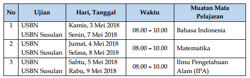 Jadwal UN 2018 dan USBN 2018 untuk SMP SMA dan SMK - Info Kurikulum dan Perbukuan