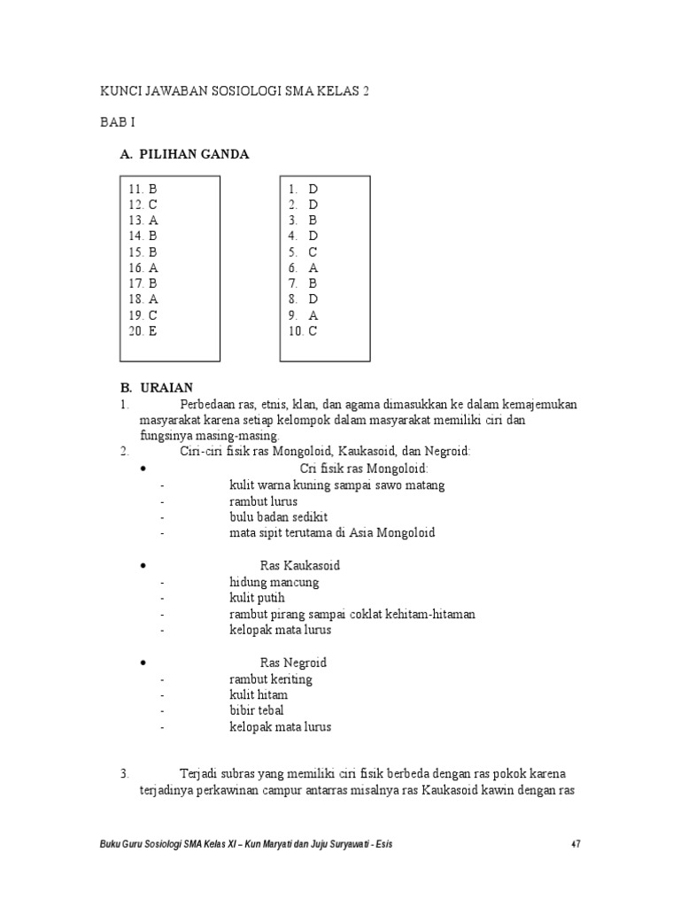 Kunci Jawaban Buku Sosiologi Esis Kelas Xi Kurikulum 2013 - Kanal Jabar