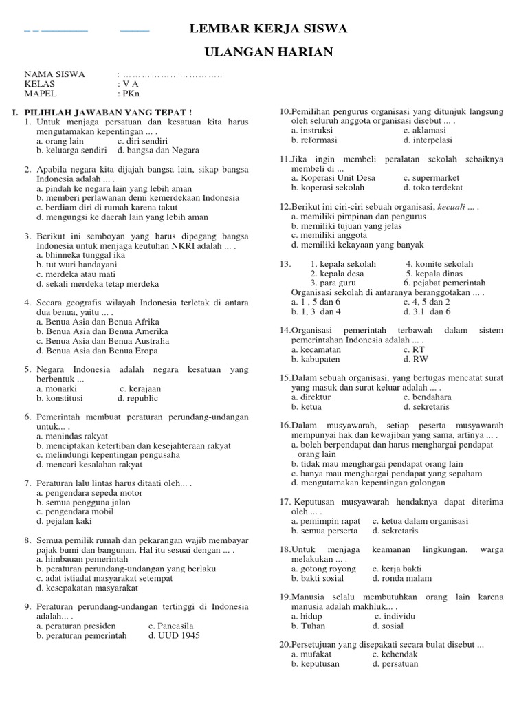 Soal Uts Ski Kelas 5 Semester 2 Dan Kunci Jawaban - Guru Galeri