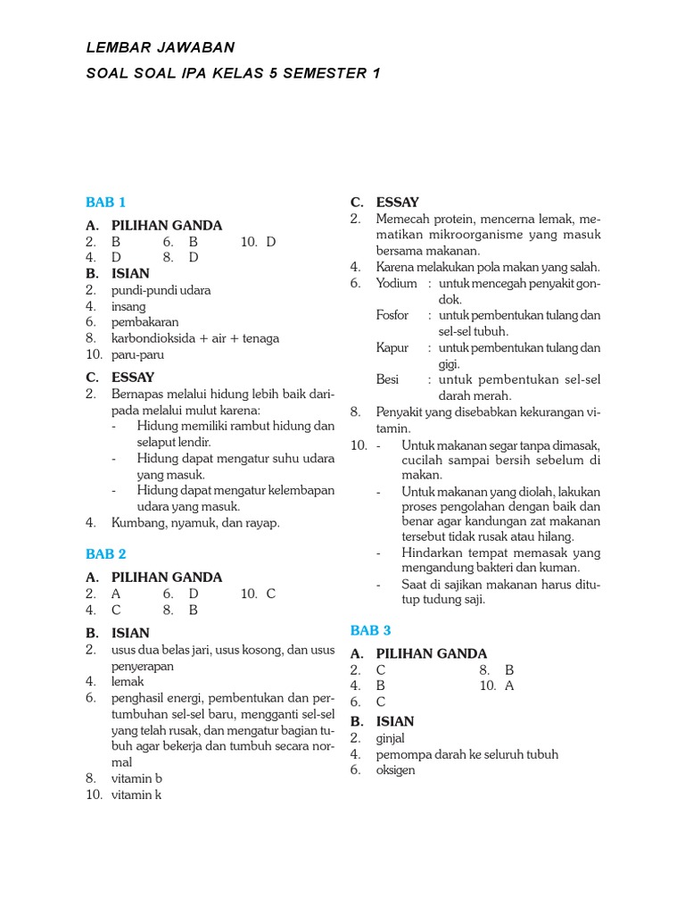 Kunci Jawaban Soal Soal Ipa Kelas 5 Semester 1