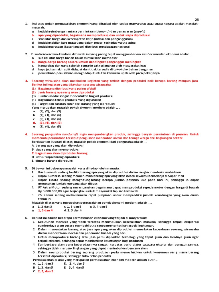 102 Contoh Soal Materi Masalah Pokok Ekonomi / Permasalahan …