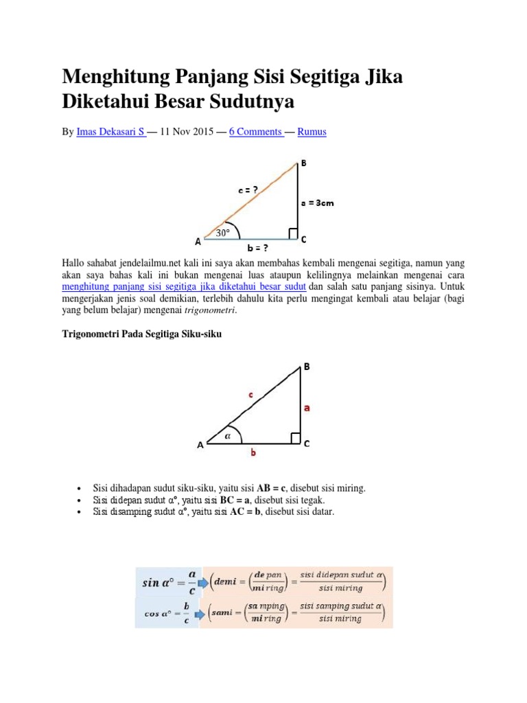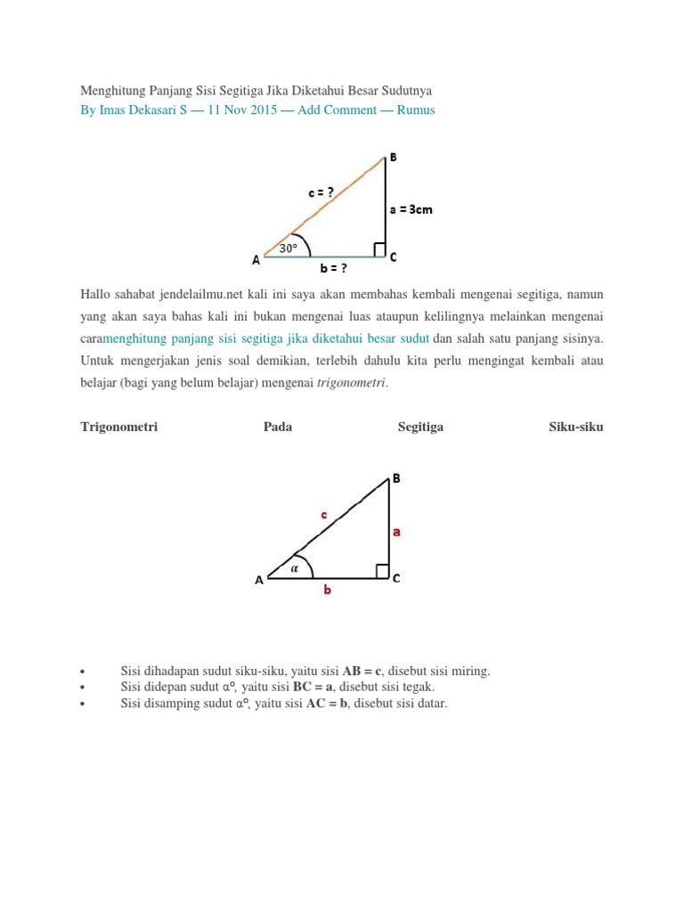 Menghitung Panjang Sisi Segitiga Jika Diketahui Besar Sudutnya …
