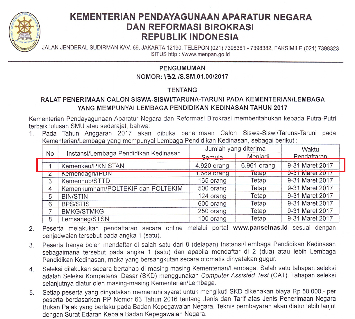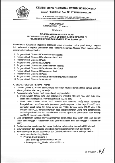 Update Pengumuman Terbaru PKN STAN Tahun 2017/2018 (Setelah Ralat …