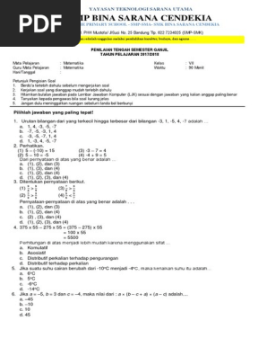 Soal Matematika UTS SMP Kelas VII